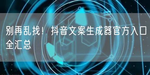总之,通过本文的汇总和介绍,相信您已经对抖音文案生成器有了更深入的了解。别再乱找,找到官方入口,轻松创作优质抖音文案!